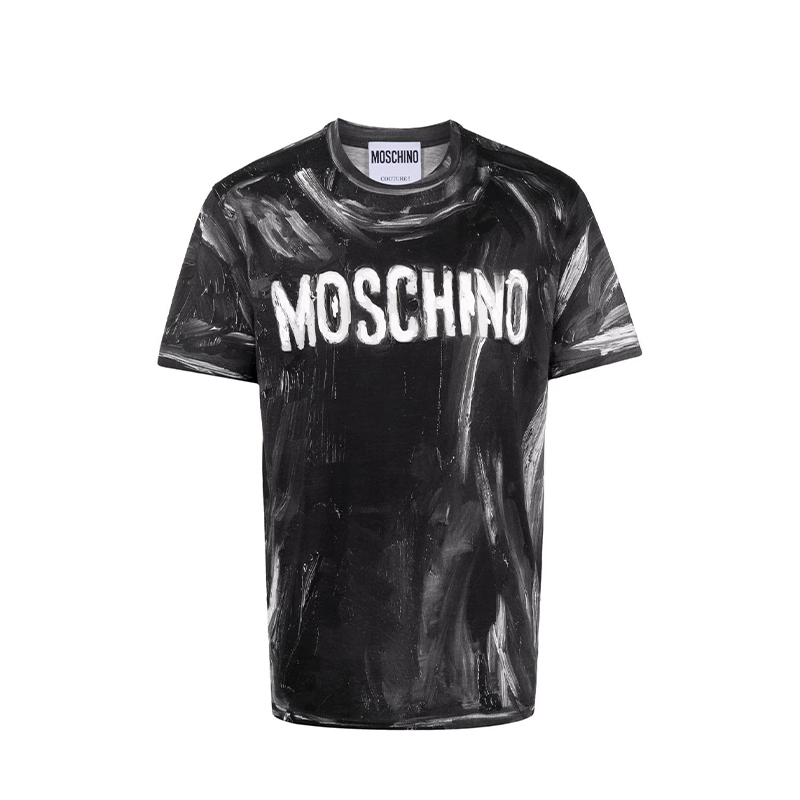 油漆效果 正面印有徽标 圆领 男士 T恤